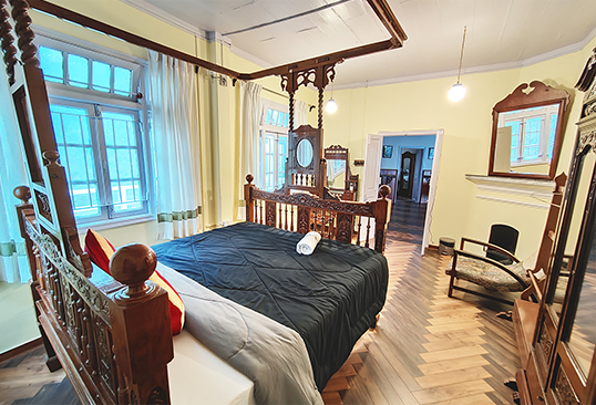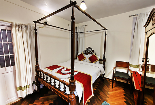 Our 3 Heritage Deluxe Rooms (on the first floor) offer an unmatched experience of grandeur and elegance. Revel in the comforts of the spacious and luxurious heritage deluxe rooms that are designed elegantly and fitted with all the modern amenities. The rooms exude an old world charm. The greenery and mountains that surround the house and the serenity and tranquillity of the hills adds to the charming elegance of the room.