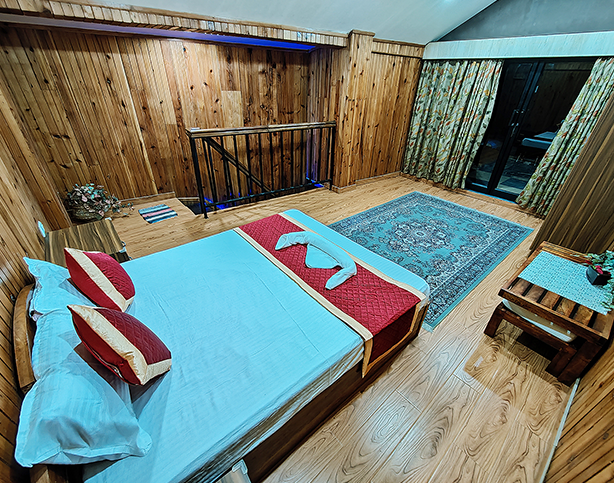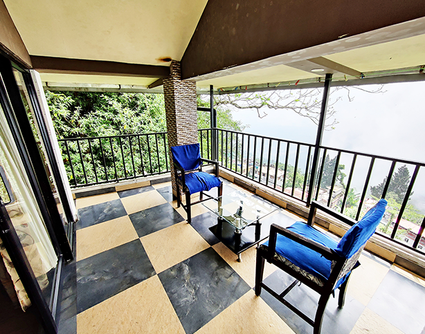 These 2 rooms are nestled in an annexure to the main building on two different levels. Housed with all comforts of the main house, the added advantage of this duplex is the unobstructed view of the mountains from a delightful balcony. Ideal for a family, these rooms are serviced from the main pantry and kitchen.
