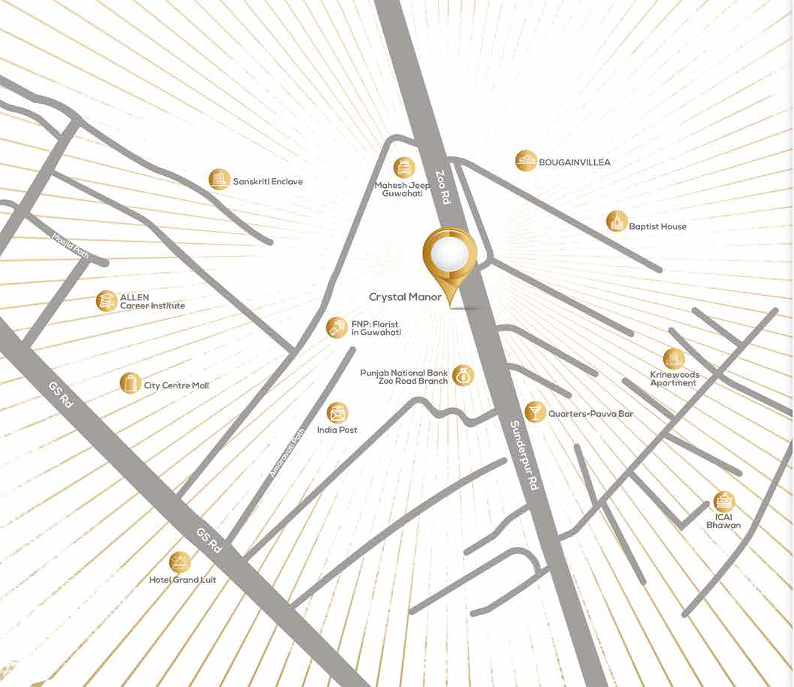 Be the 'centre of attraction' at the central point of the city of Guwahati. Welcome to your ever-cherished haven 'Crystal Manor', next to everything. It's a lovely world where the world outside will come within your arm's length. Malls to lifestyle zones, hospitals to hotels, educational centres to entertainment hub, there's everything at your service. Enjoy the conveniences of a kingly location that will gel well with your royal lifestyle inside. All you need is to just step outside your premises!