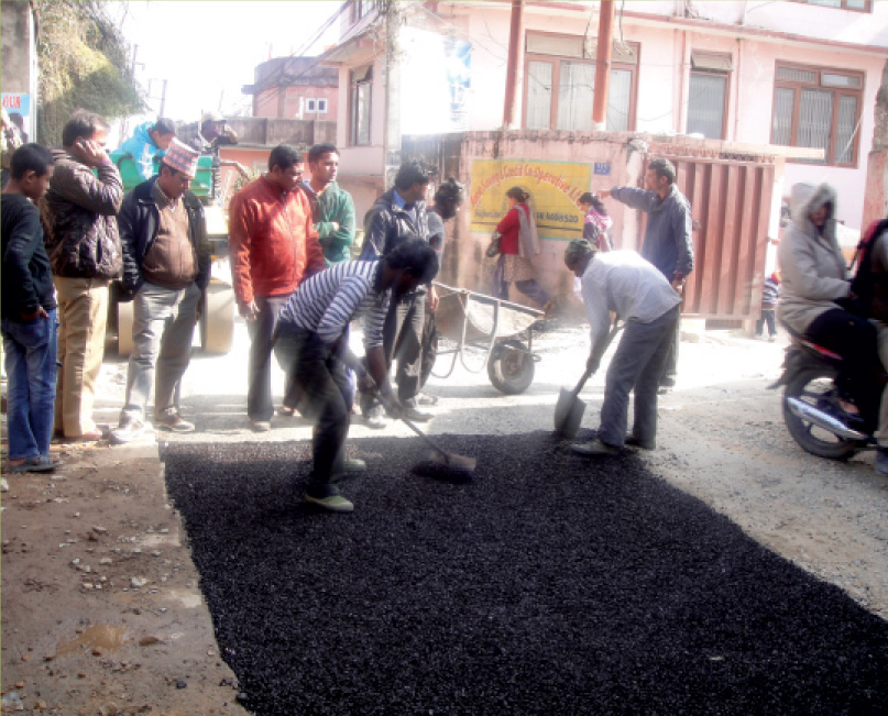 Hi-Seal premix or surface dressing is applied on the penetration macadam.