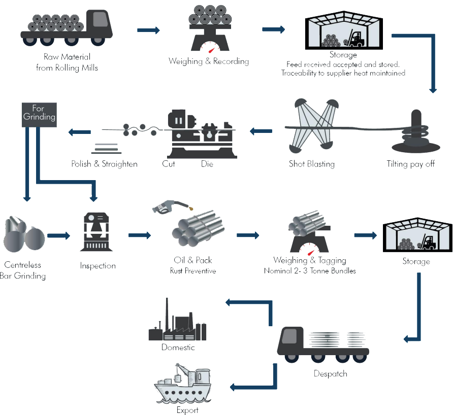 All approved bars are lubricated with rust preventing oil and packed into bundles of approximately 1-1.5 tons weight. The finished bundles are tagged, colored and accounted for without fail so as to facilitate traceability to the customers in account of any quality or other problem that arise post delivery from our site.