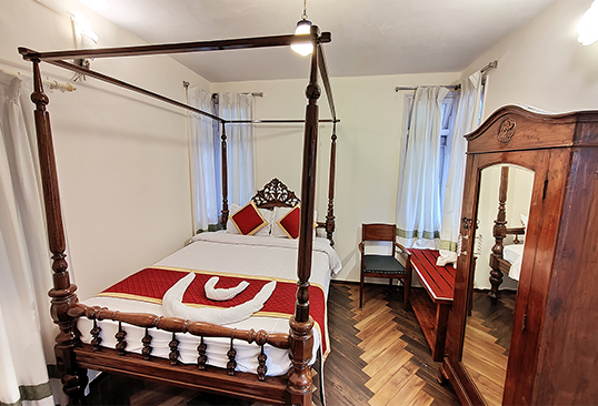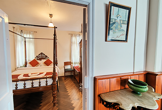 Our 3 Heritage Deluxe Rooms (on the first floor) offer an unmatched experience of grandeur and elegance. Revel in the comforts of the spacious and luxurious heritage deluxe rooms that are designed elegantly and fitted with all the modern amenities. The rooms exude an old world charm. The greenery and mountains that surround the house and the serenity and tranquillity of the hills adds to the charming elegance of the room.