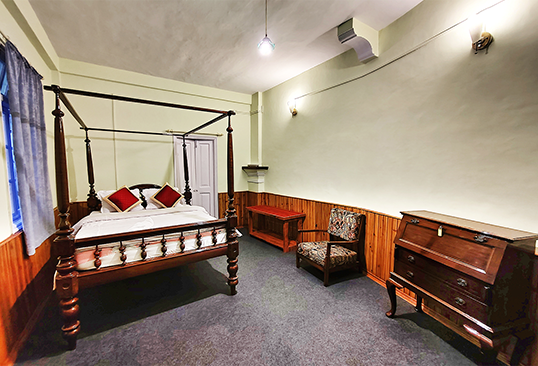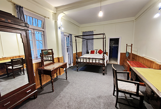 The 2 Deluxe Rooms on the ground floor is immaculate in preserving the old world charm of Kurseong and the colonial summer capital of yesteryears, Darjeeling. The Deluxe Rooms are staid and minimalistic and reminiscent of an era bygone. Equipped with all the modern amenities, the rooms are stylish and suave and exude an old world charm.