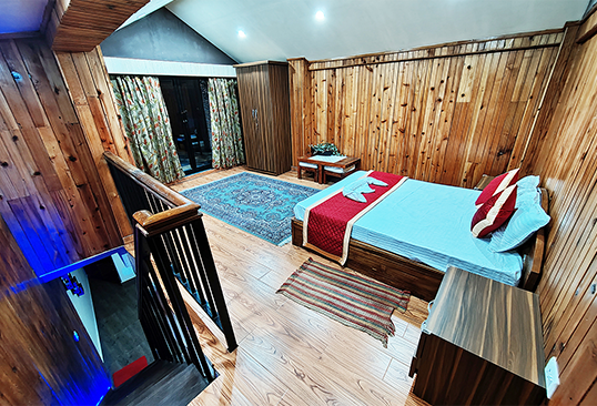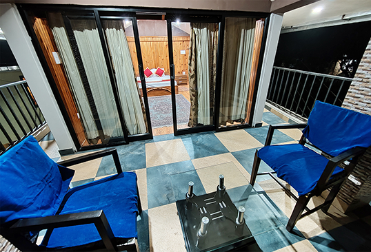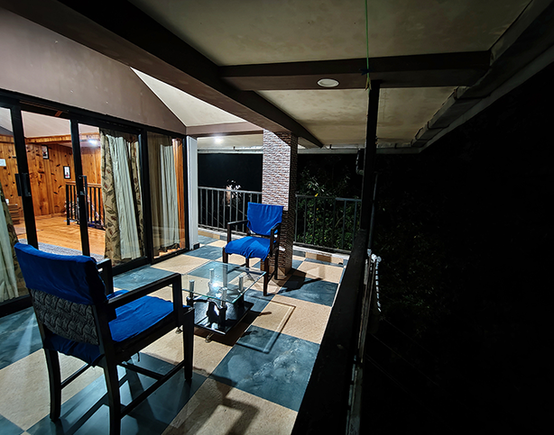These 2 rooms are nestled in an annexure to the main building on two different levels. Housed with all comforts of the main house, the added advantage of this duplex is the unobstructed view of the mountains from a delightful balcony. Ideal for a family, these rooms are serviced from the main pantry and kitchen.