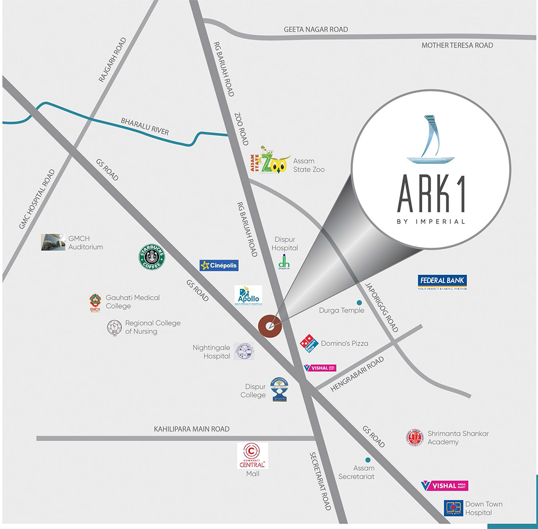 ARK 1 enjoys an excellent business location where it is proximate to all parts of the city via a strong transport network. The project opens towards both Zoo Road and GS Road, which makes it a premium and versatile address! Also, there are multiple conveniences within a close radius of the project, making it the perfect hub for seamless business!