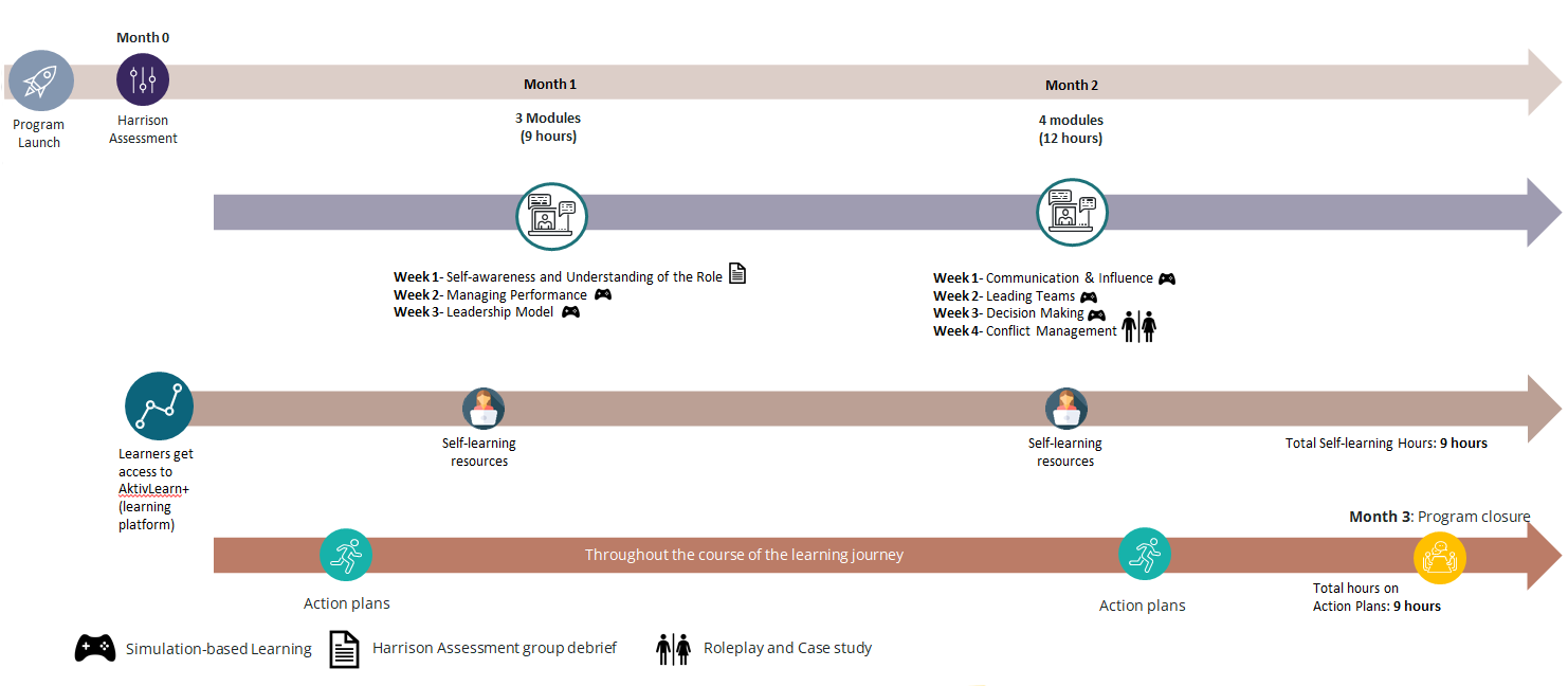 The learning journey spans two months and is delivered virtually, allowing participants to engage remotely while maintaining a high level of interaction and learning. Each module is designed to be three hours long, ensuring comprehensive coverage of the topics while optimizing participant engagement and retention. The program incorporates a blend of theoretical learning, interactive discussions, practical exercises, and simulated environments to enhance learning effectiveness and application in real-world scenarios.