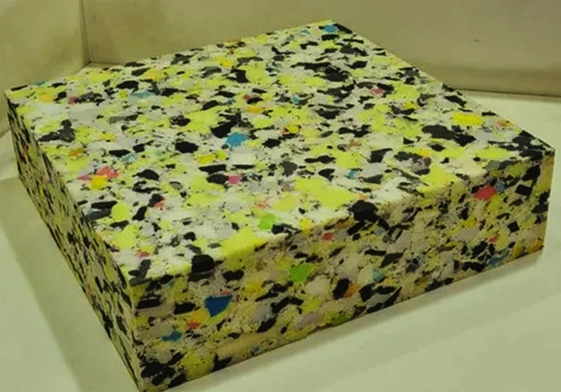 scraps are mixed with liquid polyurethane. This binds them and compresses them into a block. This foam has an open-cell structure and is known for