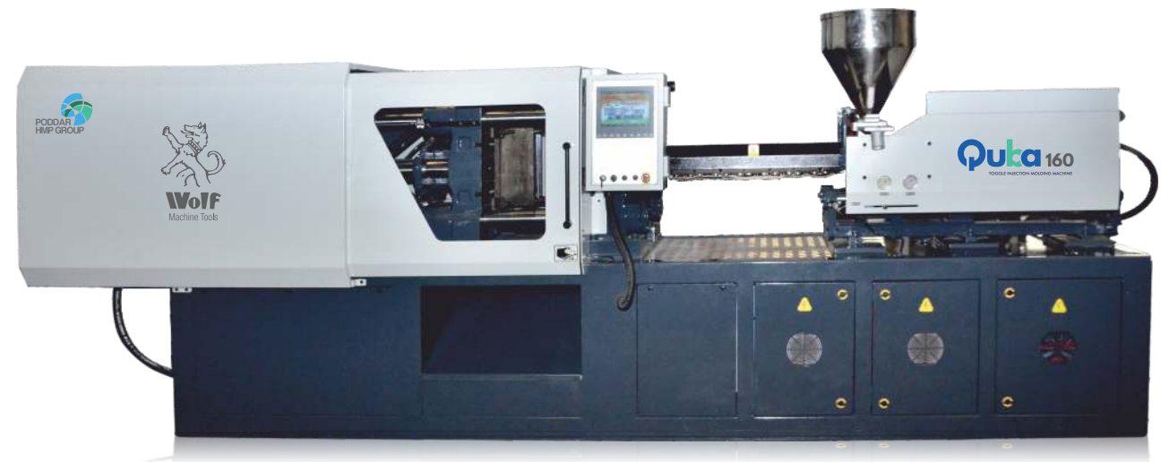 Robust and Rugged five-point double toggle mechanism is designed for its quick mold open close movements along