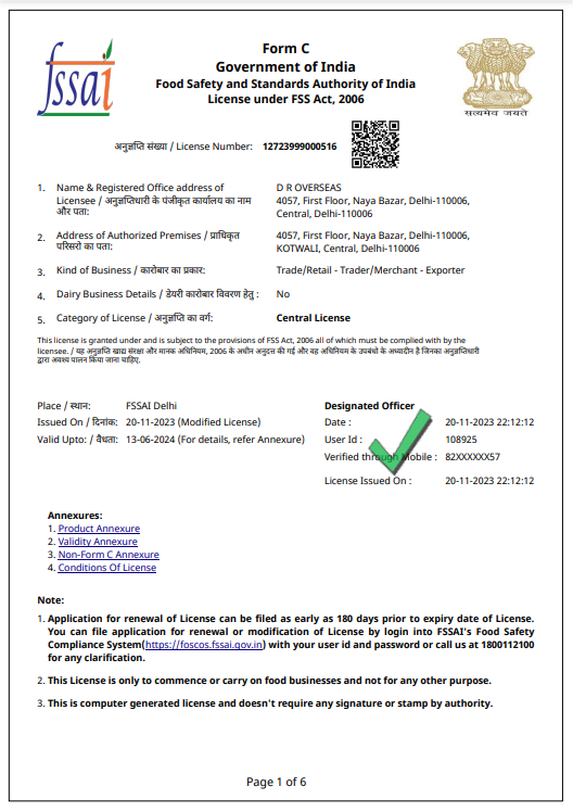 Fssai-License Number: 12723999000516
